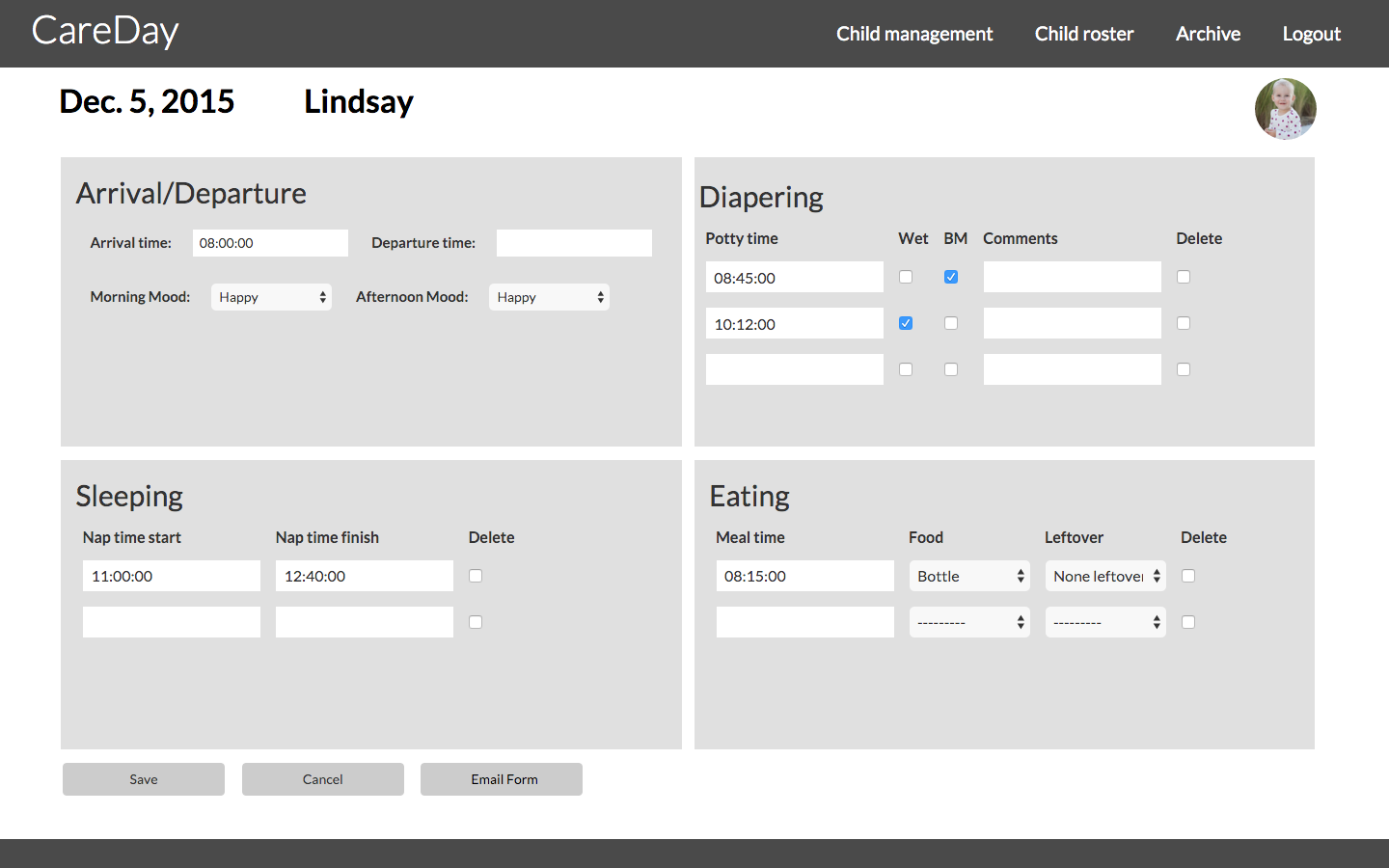- Worked with two back end developers as the sole front end engineer on CareDay